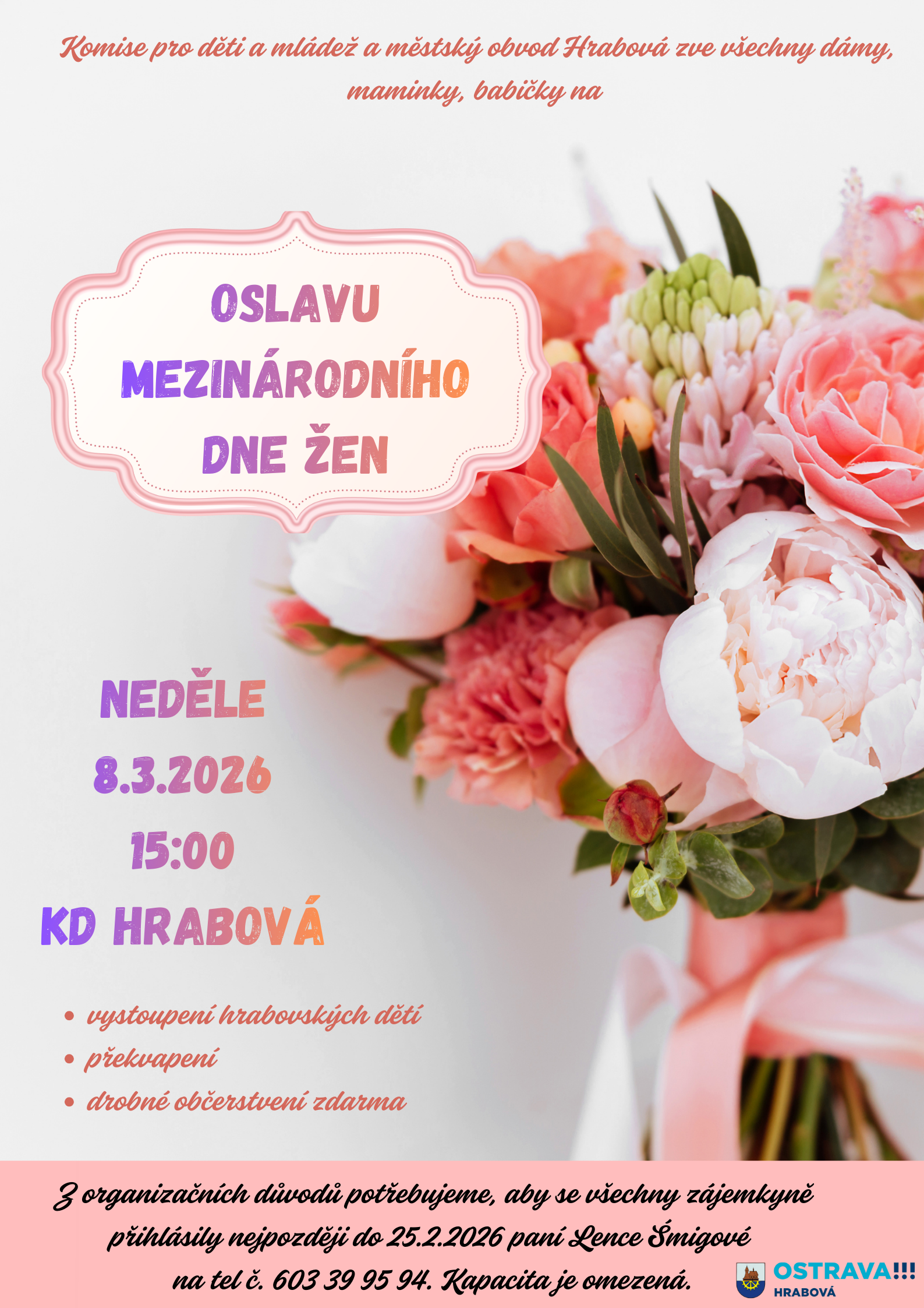 Městský obvod Hrabová ve spolupráci s Komisí pro děti a mládež zve všechny mladé ve věku od 10 do 17,99 let na Valentýnskou dětskou diskotéku, která se uskuteční v sobotu 14. února 2026 od 16:00 do 20:00 hodin v Kulturním domě Hrabová. Čeká vás odpoledne plné hudby, kdy zazní jeden hit za druhým, chybět nebude ani tombola […]